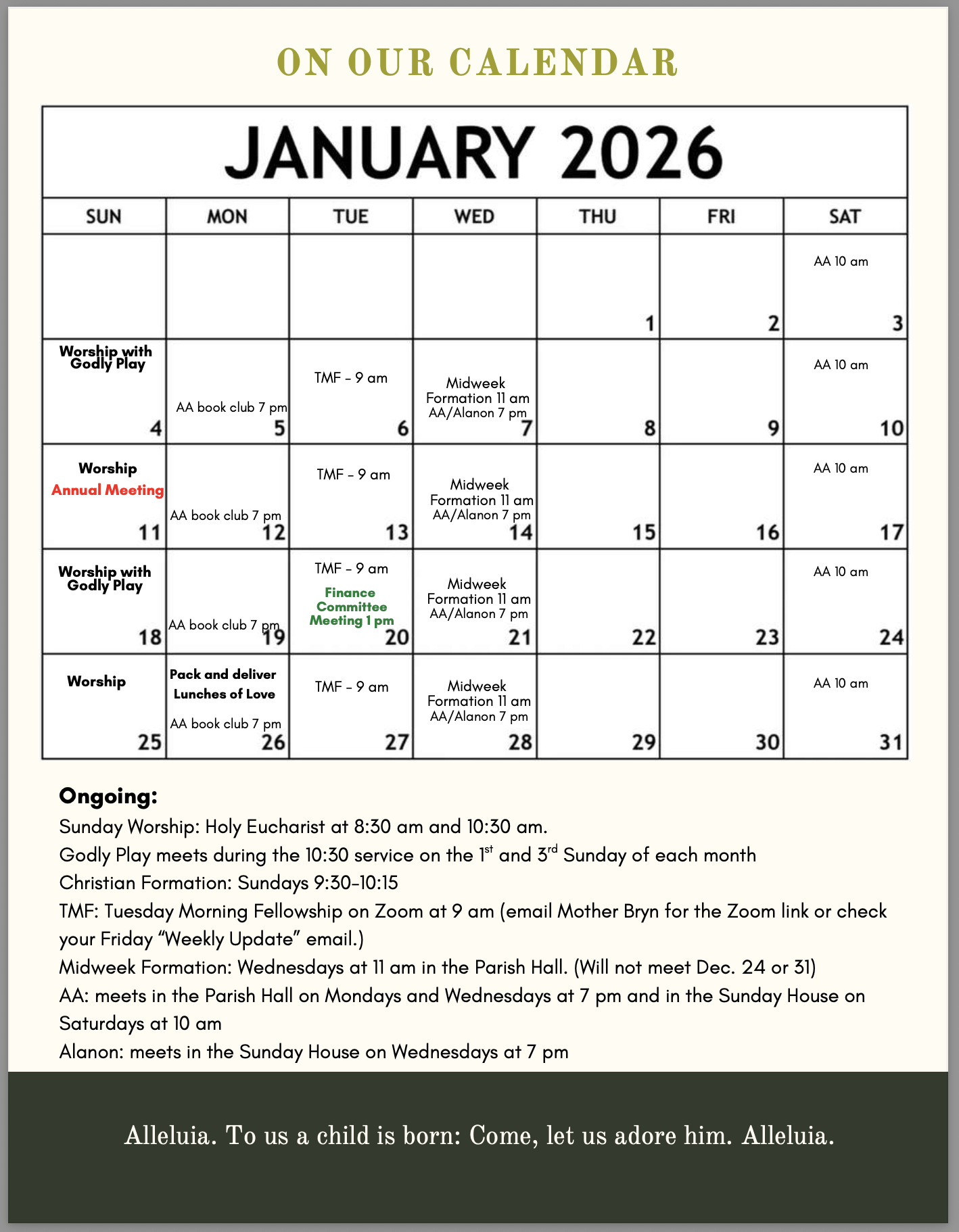 St. Michael’s 2026 Bishop’s Committee - Jody Wright (Bishop’s Warden), Steve Kumbalek (Junior Warden), John DeCecco, Aylin Snodgrass, Hardwick Bieri, Ginger Faught, Liz Tschoepe